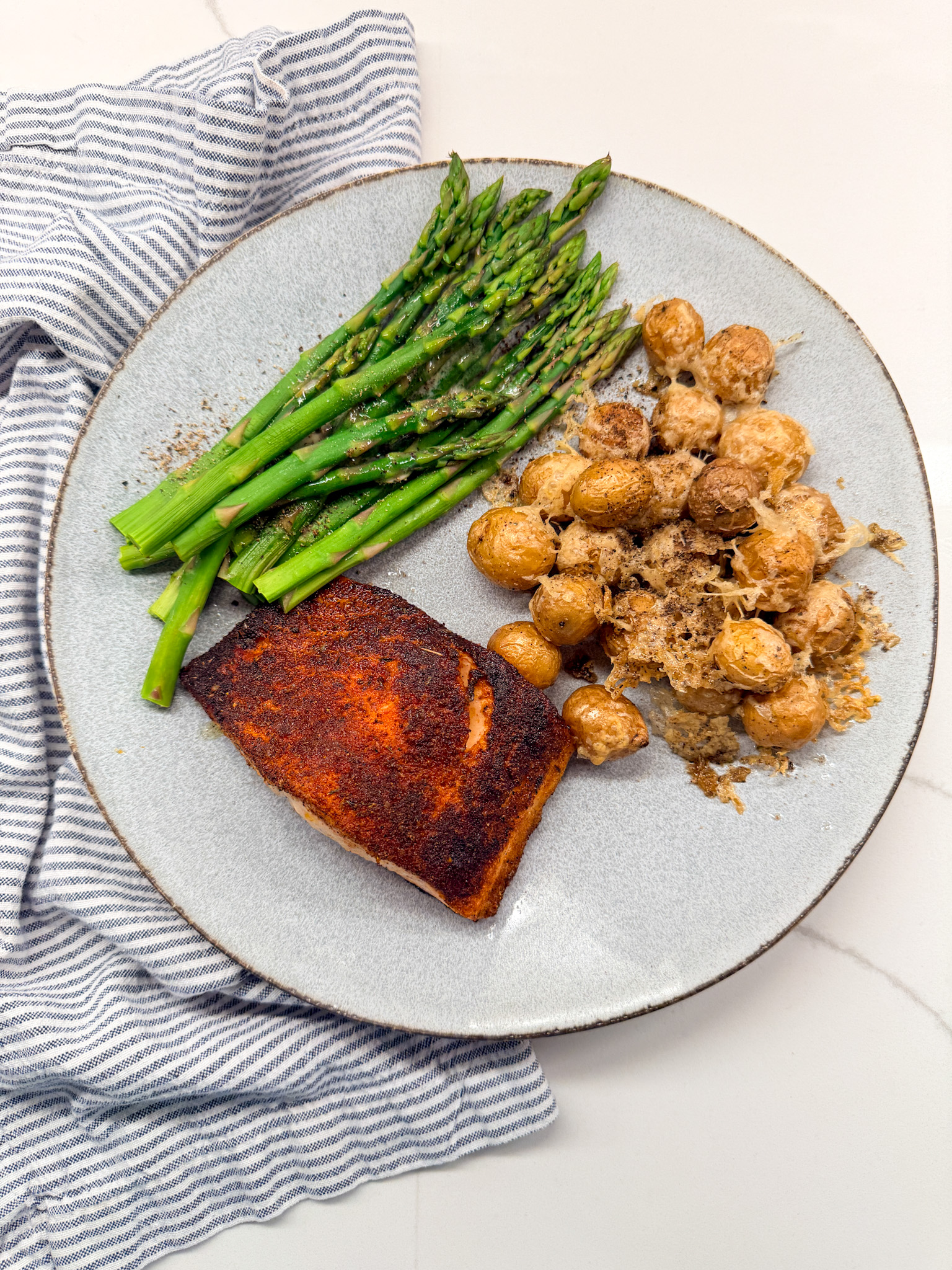 - Steamed asparagus and roasted potatoes
