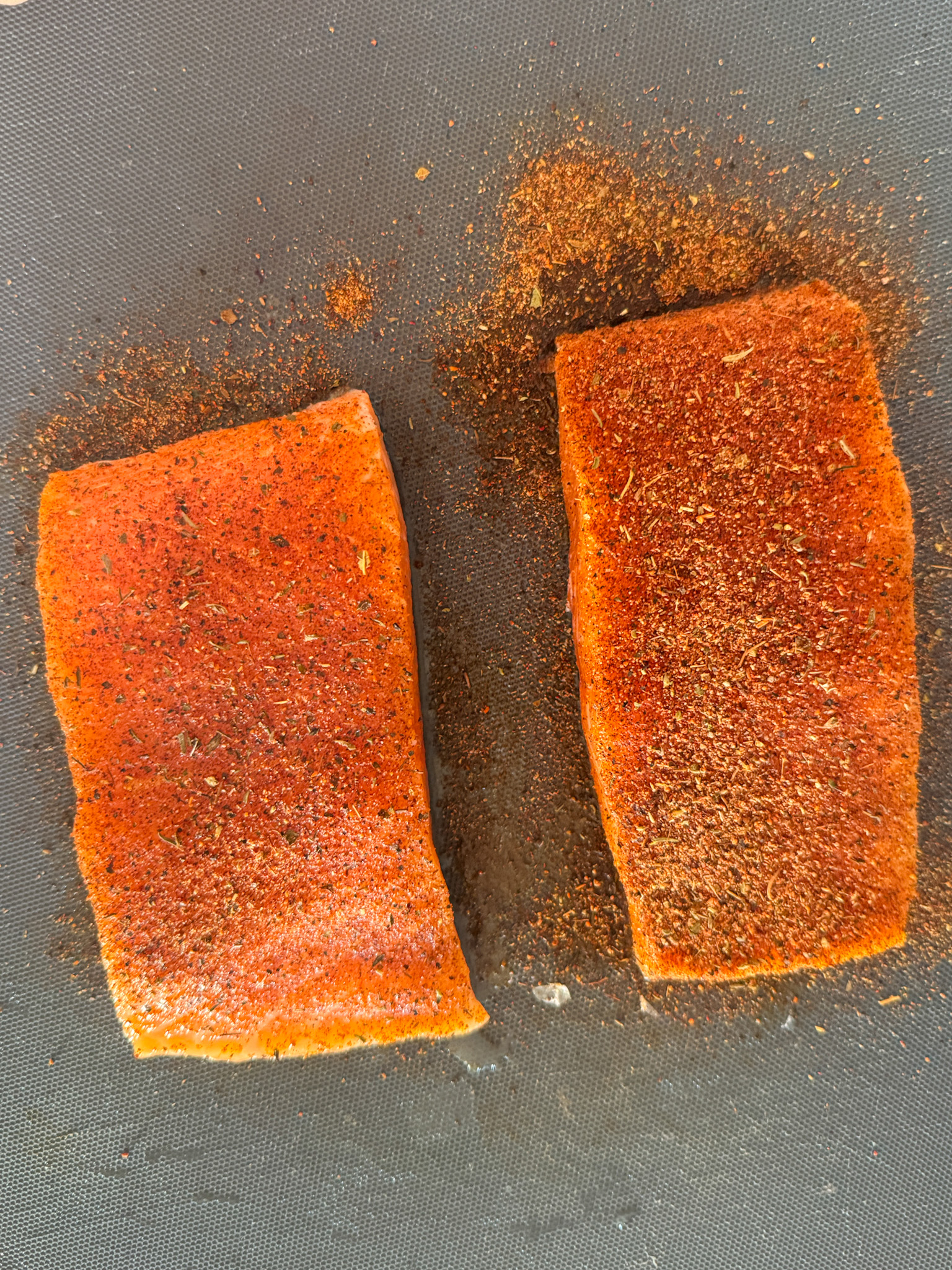 raw salmon seasoned with blackened spice